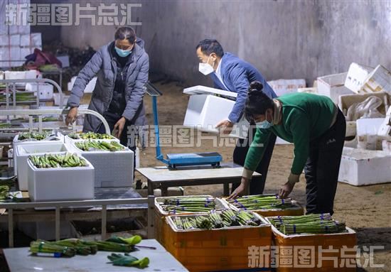 2023年1月7日,位于新疆和田地区洛浦县农业科技示范园区洛浦县大漠桃花源果蔬专业合作芦笋大棚内,员工正在包装芦笋。