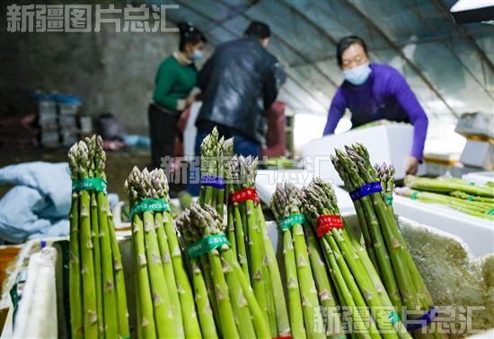 2023年1月7日,位于新疆和田地区洛浦县农业科技示范园区洛浦县大漠桃花源果蔬专业合作芦笋大棚内,员工正在包装芦笋。
