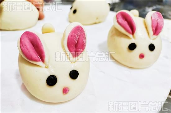 2023年1月16日,沙湾市三道河子镇少年路社区辖区的小学生制作的小白兔花馍