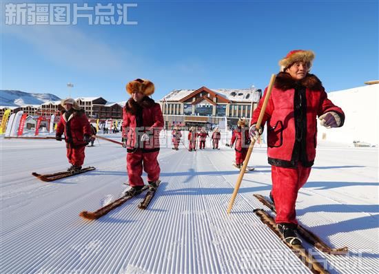 2023年1月16日,新疆维吾尔自治区第一届冬季运动会“卡宾杯”古老毛皮板滑雪交流赛在阿勒泰市的将军山国际滑雪度假村开赛。
