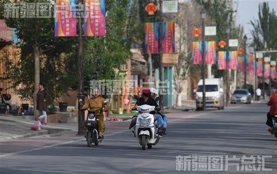 2023年6月5日,村民骑着电动车行驶在阿图什市松他克镇阿孜汗村街道上。