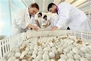 2023年6月5日,技术员在新疆祥泰牧业有限公司羊舍为柯尔克孜羊进行胚胎移植工作。新疆祥泰牧业有限公司自2021年运营以来,养殖近2万只纯种羊,在公司技术团队的研究下,孕育新品种,达到提纯复壮的目标,将柯尔克孜羊从普通单胎土羊到多胎羊的转变,实现了柯尔克孜品种羊的多胎多产,现在每只羊达到每2年产3胎。阿图什市现代农业产业园位于阿图什市松他克镇克青孜村,示范园2020年成立,占地20万亩,投入 8000 万元建设新疆红羊养殖项目,投入3000 万元新建 5000 亩饲草基地配套建设项目。