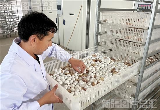 2023年6月5日,工人在阿图什市威望生态养殖科技有限责任公司孵化车间人工分拣孵化出的乳鸽。该公司乳鸽养殖示范项目2020年10月成立,是专业的乳鸽人工孵化、人工哺育、研制乳鸽前期配合饲料(人工鸽乳)、乳鸽灌喂技术培训等集于一身的权威化的大规模养殖基地。阿图什市现代农业产业园位于阿图什市松他克镇克青孜村,示范园2020年成立,占地20万亩,投入 8000 万元建设新疆红羊养殖项目,投入3000 万元新建 5000 亩饲草基地配套建设项目。