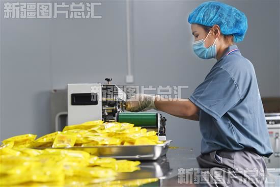 2023年6月6日,员工在新疆开心弘盛药业有限公司厂房包装药茶。