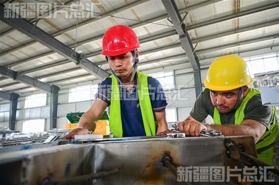 2023年6月11日,在呼图壁县锦华盛业高产奶牛养殖区建设项目现场,工人正在施工作业。