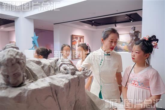 2023年6月10日,学生在昌吉回族自治州美术馆参观美术作品。