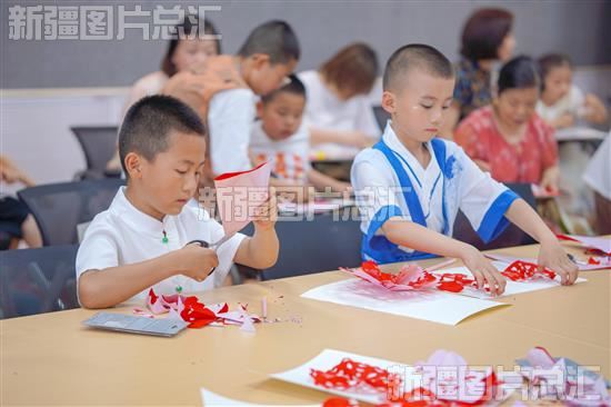当日,昌吉市第五小学学生在老师的带领下走进昌吉州美术馆,参观美术、书法、摄影、雕塑作品,学习剪纸技艺,感受新疆历史文化。