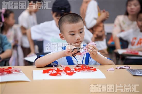 当日,昌吉市第五小学学生在老师的带领下走进昌吉州美术馆,参观美术、书法、摄影、雕塑作品,学习剪纸技艺,感受新疆历史文化。