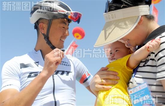 2023年6月12日,一名参加环湖赛的选手与家人一起庆祝。