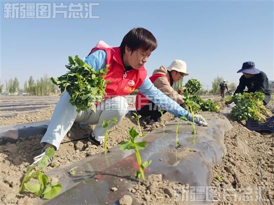 “五一”假期,沙湾市市场监督管理局驻乌兰乌苏镇头浮新村“访惠聚”工作队队员坚守岗位,帮助村民移栽板栗薯苗,用实际行动助农增收。