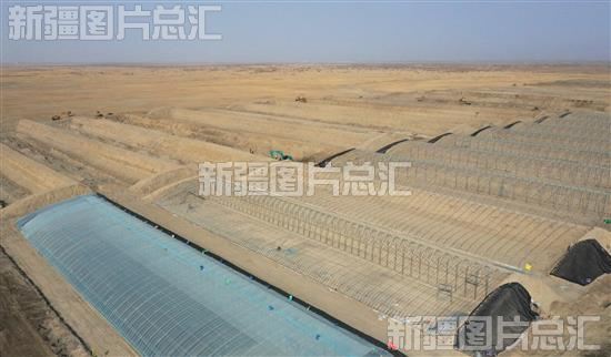 2023年3月1日,尉犁县戈壁设施农业产业园设施大棚项目建设现场。