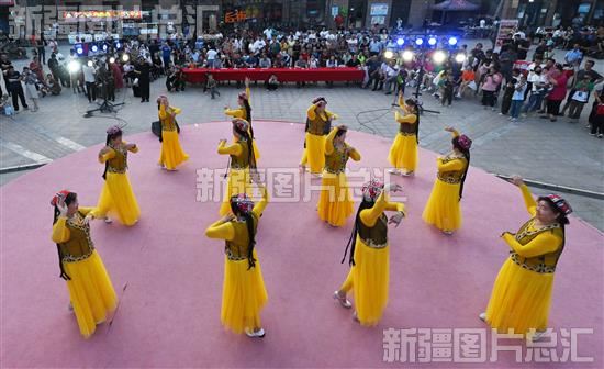 关键字:巴音郭楞蒙古自治州 巴州 库尔勒市 丝路街道 社区 居民 观看 节目 群众大舞台 百日广场 文化活动 演员 表演 舞蹈