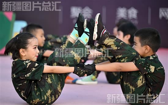 2023年6月16日,库尔勒市丝路街道索克巴格社区小朋友在表演文体活动。