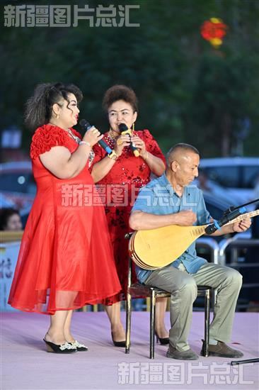 2023年6月16日,演员在库尔勒市丝路街道索克巴格社区表演女声二重唱。