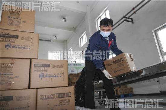 2023年1月28日,纳爱斯乌鲁木齐有限公司液洗车间,工作人员在搬运产品。