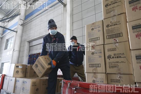 2023年1月28日,纳爱斯乌鲁木齐有限公司液洗车间,工作人员在搬运产品。