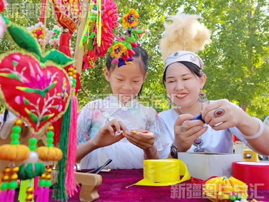 2023年6月18日,工作队队员与小朋友一起做香包。