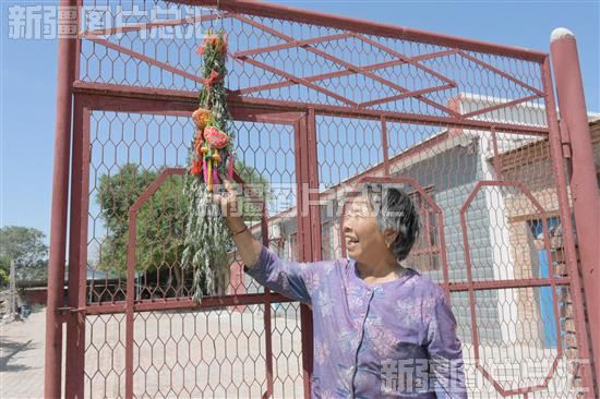 2023年6月18日,村民看着挂在门上的艾草。脸上洋溢着幸福的笑容。