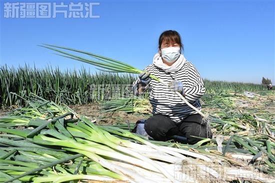 2022年10月12日,沙湾市大泉乡城郊西村务工人员分拣大葱。