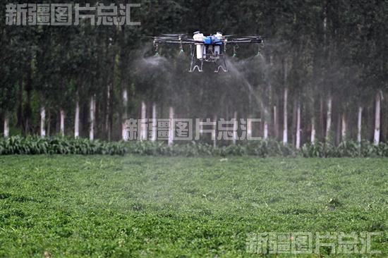 2023年6月19日,和硕县苏哈特乡肖然托勒盖村农民操作无人机在辣椒种植基进行喷施农药作业。