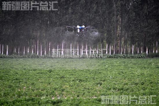 2023年6月19日,和硕县苏哈特乡肖然托勒盖村农民操作无人机在辣椒种植基进行喷施农药作业。