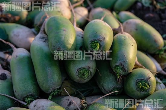 2022年10月11日,呼图壁县园户村镇马场湖村的萝卜喜获丰收。
