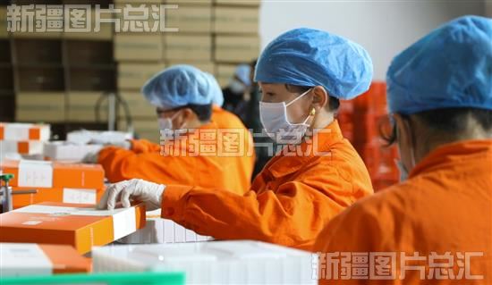 2022年9月26日,哈巴河县新疆康元生物技术集团股份有限公司的员工在生产线上包装沙棘制品。