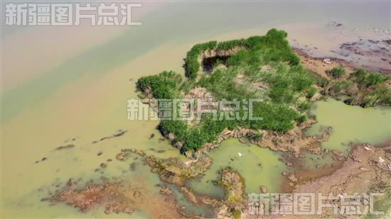 2023年5月24日,俯瞰呼图壁大海子国家湿地公园(无人机拍摄)。