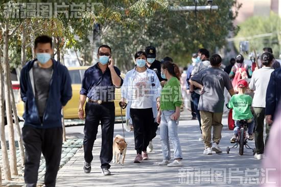 2022年9月26日,乌鲁木齐市天山区新泉街,市民走出家门散步。