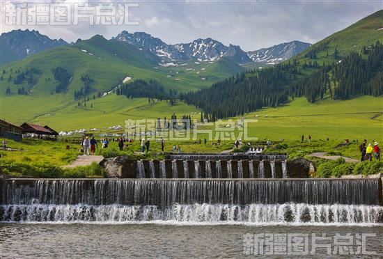 2023年6月24日,那拉提空中草原绿草茵茵,雪山松林、湿地湖泊,构成一幅引人入胜的壮美画卷。