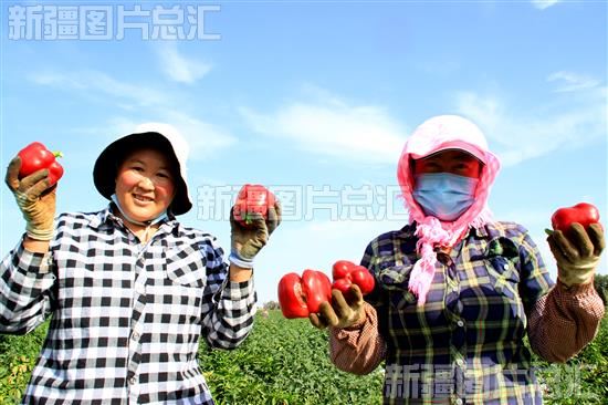 2022年9月22日,新疆吉至惠民农牧业专业合作社联合社的社员正在展示丰收的辣椒。