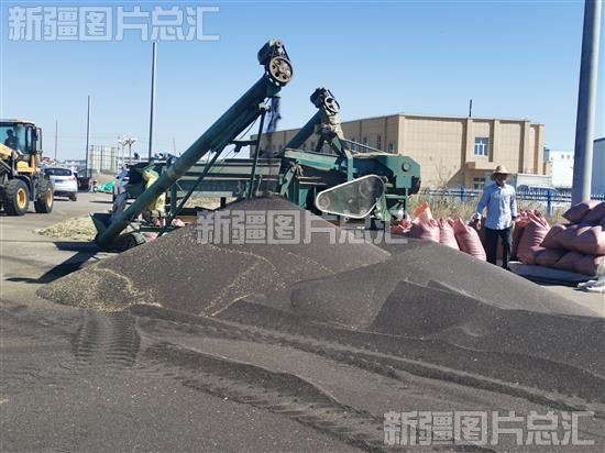 2022年9月26日,昭苏县乌尊布拉克镇加尔买里村种植户正在清理油菜籽。