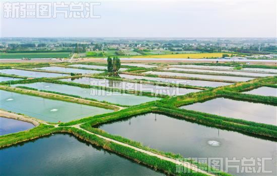 2023年6月20日,俯瞰昌吉市六工镇四户坝村鱼塘(无人机拍摄)。