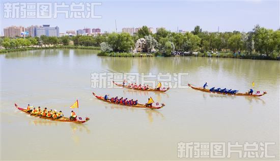 2023年6月22日,新疆生产建设兵团第六师五家渠市首届龙舟大赛在青湖御园生态旅游度假区举行。