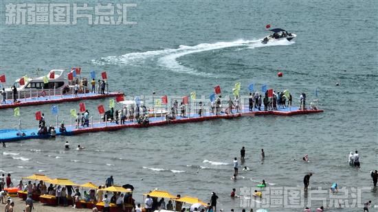 当日,自治区第十四届运动会群众展演“西海竞渡 多彩和硕”龙舟赛在和硕金沙滩景区开赛,来自全疆16支参赛队一决高下,吸引众多游客前来观看。