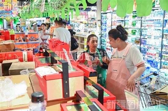 2023年6月21日,市民在昌吉市汇嘉时代购物中心选购粽子。