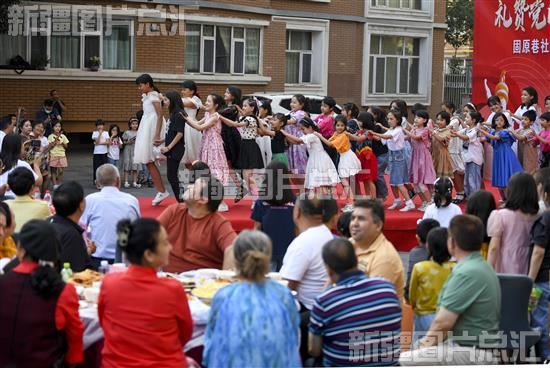 2023年6月25日,乌鲁木齐市天山区二道桥街道固原巷社区的小朋友为居民们表演节目。