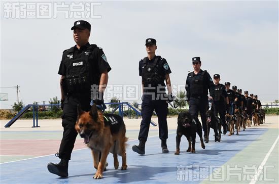 2023年6月23日,吐鲁番市公安系统警犬入场比武。