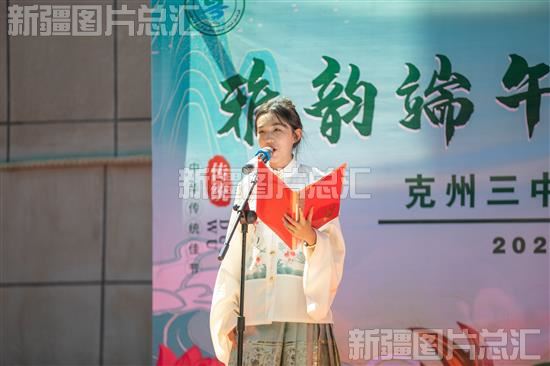 当日,克孜勒苏柯尔克孜自治州第三中学举办“雅韵端午 情系赣克”迎端午游园会。活动现场粽叶飘香,歌舞满堂。
