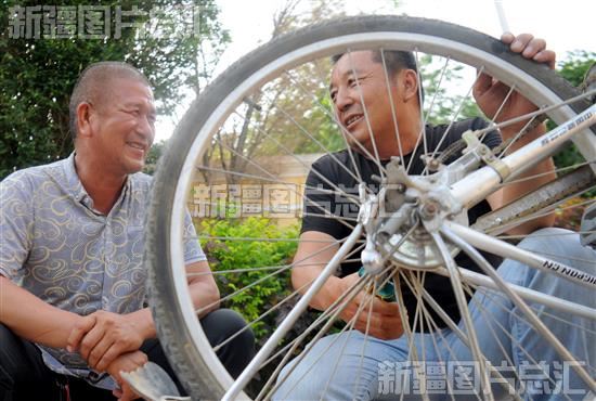 2023年6月20日,“石榴籽服务站”工作人员为村民修理自行车。