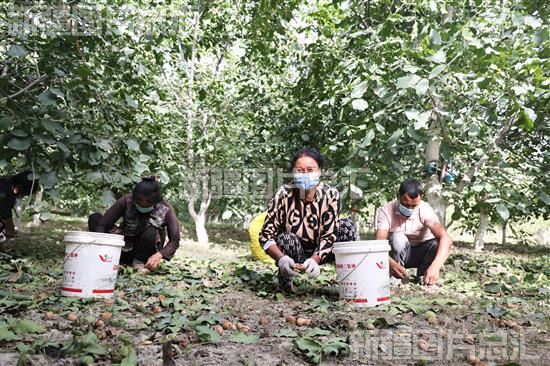 眼下,乌什县各乡(镇)种植的薄皮核桃陆续成熟,果农们加紧采收,上市销售。