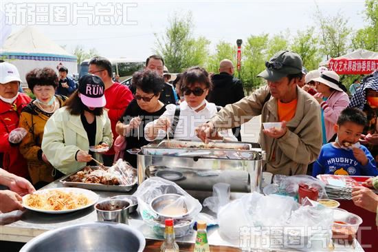2023年5月19日,昌吉市阿什里乡组织开展“舞上舌尖·想家的味道地方特色美食品鉴大赛”,众多游客前来游玩品尝。