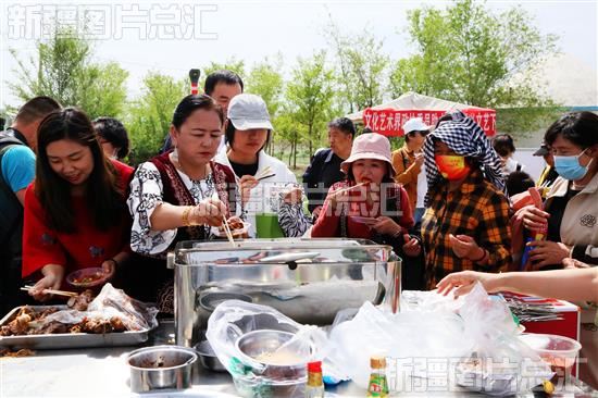 2023年5月19日,昌吉市阿什里乡组织开展“舞上舌尖·想家的味道地方特色美食品鉴大赛”,众多游客前来游玩品尝。