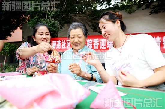 2023年6月15日,昌吉市北京南路街道丽苑社区组织各族居民串香包,通过民俗活动感受传统文化,喜迎端午。