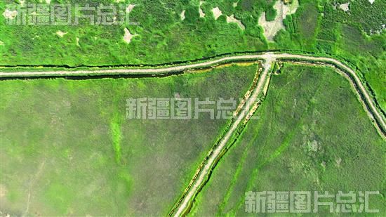 2023年6月30日,俯瞰绿意盎然的和硕县龙驹湿地(无人机拍摄)。