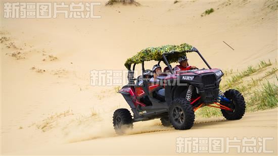 6月28日,游客在兵团第十师一八五团鸣沙山景点体验沙漠越野乐趣。