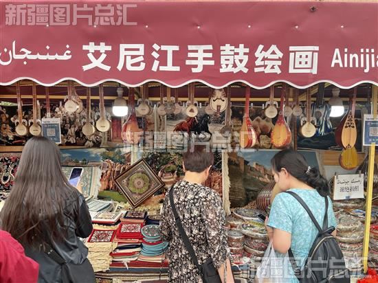 2023年6月28日,游客在新疆国际大巴扎景区选购旅游纪念品。