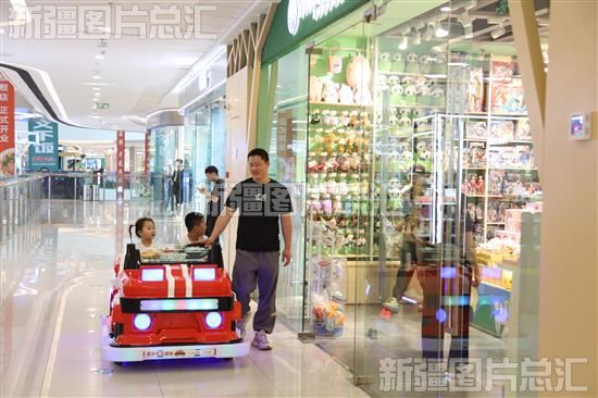 2023年7月3日晚,市民在喀什市万达广场休闲购物。