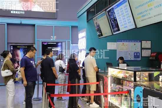 2023年7月3日晚,市民在喀什市万达广场影院排队观影 。