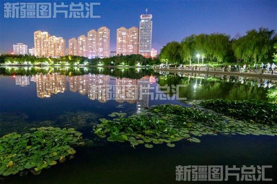 2023年7月3日,乌鲁木齐南湖市民广场夜景。
